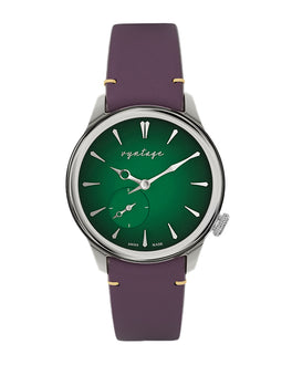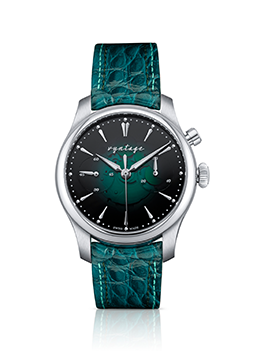 This timepiece captures the serene beauty of evening city lights with its unique green smoked dial, enhanced by a subtle hammered effect and silvered domed hand-applied indexes.